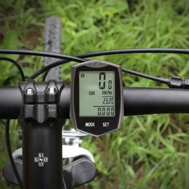 - Funkcje dodatkowe - podświetlenie, przypomnienie o konserwacji, porównanie prędkości, ustawienie obwodu koła, wskażnik niskiej baterii, automatyczne wyłączanie i inne.